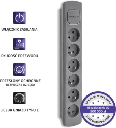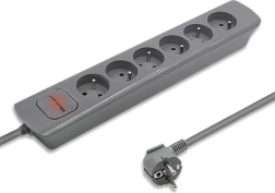 Vind een plek voor al uw apparaten met deze grijze verdeelstrip, die zes stopcontacten en een kabellengte van 1,8 meter biedt. Geschikt voor gebruik in huizen en kantoren waar efficiënte kabelorganisatie nodig is.