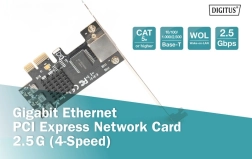 De DIGITUS PCIe Gigabit-kaart ondersteunt diverse standaarden voor flexibele connectiviteit. Compatibel met IEEE802.3u voor Fast Ethernet en IEEE802.3ab voor Gigabit Ethernet met snelheden tot 2,5 Gbps. Beschikt over full-duplex flow control volgens IEEE802.3x en Wake-on-LAN voor eenvoudigere netwerkverbinding en -beheer.