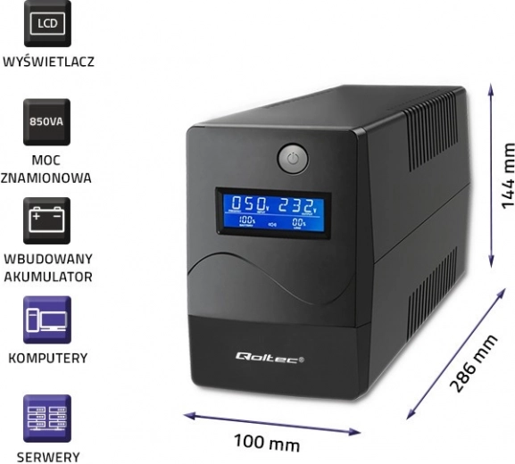 De Qoltec UPS maakt het mogelijk uw computer of andere apparaten veilig en stabiel te gebruiken, zelfs bij een stroomstoring. Belangrijke functies: