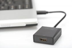 Breid je werkruimte uit met deze compacte USB 3.0-naar-HDMI-adapter. Biedt Full HD 1920 × 1080 bij 60 Hz, ondersteuning voor dual display (spiegelen en uitbreiden), plug & play zonder herstart en voeding rechtstreeks via USB – geen externe voeding nodig.