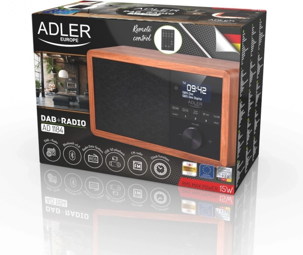 In een tijd van technologische vooruitgang verwachten we ook nieuwe oplossingen voor radiotoestellen. Of we nu thuis of op het werk zijn, we hebben graag muziek of favoriete radioprogramma’s bij de hand om de tijd te veraangenamen. Dankzij de Bluetooth-technologie in de AD 1184 kunt u draadloos verbinden met het apparaat waarvan u muziek afspeelt, of dat nu een smartphone, tablet of computer is. Het elegante design en de houten behuizing zorgen ervoor dat de radio in elk interieur past. De radio ontvangt uitzendingen op de FM-, AM- en DAB+-band. Het toestel is uitgerust met een goed leesbaar lcd-scherm. De radio heeft een ingebouwde klok en wekkfunctie. U kunt luisteren naar uw favoriete zenders op FM, AM en natuurlijk DAB+. Het is een zeer nuttige combinatie van meerdere functies. Luidsprekers met een vermogen van 3 W zorgen voor een helder en zuiver geluid. En met het zendergeheugen kunt u eenvoudig uw favoriete en meest beluisterde stations opslaan. Het lcd-scherm maakt de bediening comfortabel en vormt een stijlvol accent in de houten behuizing.