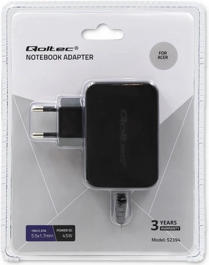 De voedingsadapter voor Acer-notebooks is de ideale oplossing voor gebruik thuis of op kantoor, als hoofd- of back-up energiebron. In de verpakking vindt u een adapter met handige klittenband, die het organiseren van de kabel vergemakkelijkt volgens uw behoeften.