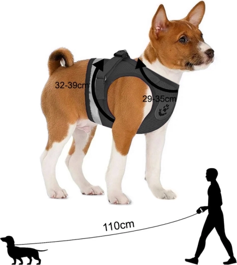 Het harnas is ontworpen voor maximaal comfort en veiligheid. De drukvrije constructie verdeelt de kracht gelijkmatig over borst en schouders, waardoor schuurplekken worden voorkomen en de beweging niet wordt beperkt. De ademende netstof en zachte voering laten de huid ademen, waardoor het ideaal is voor langere wandelingen in elk seizoen.