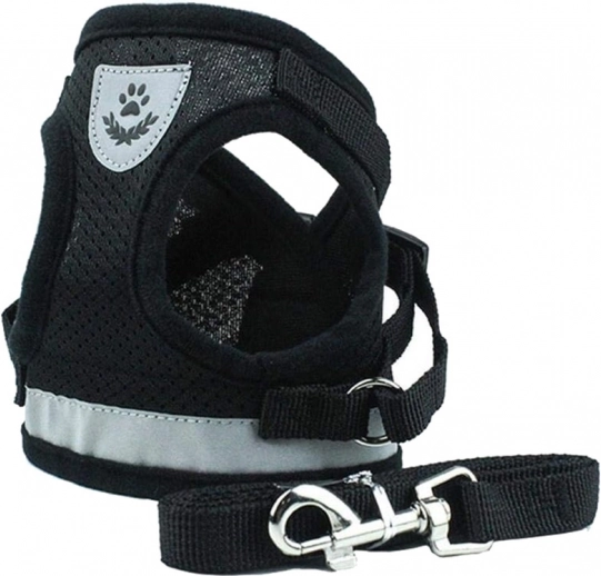Drukvrije reflecterende tuig met riem voor honden, katten en konijnen – maat S, zwart