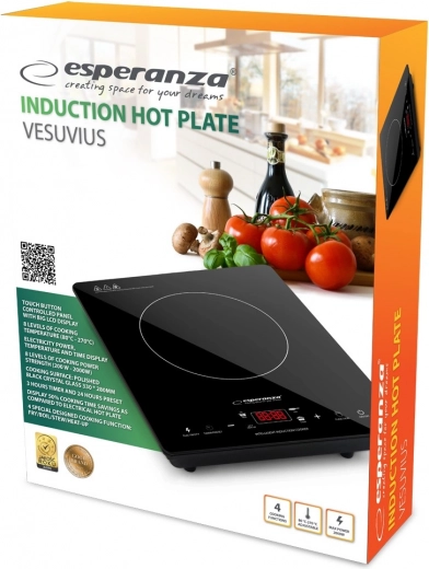De inductiekookplaat Vesuvius is een uitstekende keuze voor huishoudens, vakantiewoningen en studentenkamers. Inductietechnologie verwarmt alleen de pan en niet het omringende oppervlak, wat zorgt voor snellere resultaten en een lager energieverbruik. De matzwarte keramische kookplaat is eenvoudig te reinigen en past elegant in elke keuken.