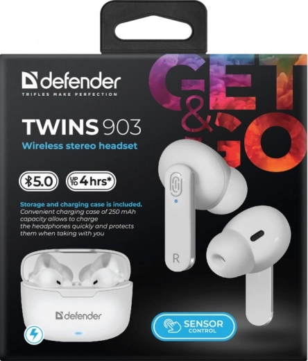 De draadloze oordopjes Defender TWINS 903 bieden de perfecte combinatie van comfort en functionaliteit, ideaal voor dagelijks gebruik. Dankzij het ergonomische ontwerp en siliconen dopjes zitten ze ook bij langer dragen comfortabel. De gebruiksvriendelijkheid wordt versterkt door de geïntegreerde microfoon en multifunctionele knop direct op de oordopjes, wat het bedienen van muziek en gesprekken vereenvoudigt.