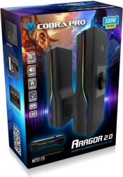 Cobra Pro Aragor 2.0 is een tweerichts stereo luidsprekersysteem met een RMS-vermogen van 8W. Dankzij zijn flexibiliteit kan het worden ingesteld als een paar afzonderlijke 2.0 luidsprekers of gecombineerd tot een enkele gaming soundbar. Dit systeem zorgt voor een getrouwe weergave van geluid, wat niet alleen gamers maar ook muziekliefhebbers en filmliefhebbers zal verrassen.