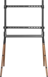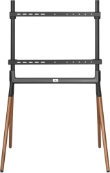 De verpakking bevat een complete montageset met schroeven en pluggen, evenals een gebruiksaanwijzing, aangevuld zodat de installatie zo snel en eenvoudig mogelijk is. Dankzij de poten in notenkleur heeft de standaard een elegante uitstraling en past hij goed bij ander meubilair. De standaard staat veilig en stabiel op vier poten. Dankzij de antislipvoeten blijft de standaard stevig op zijn plaats.