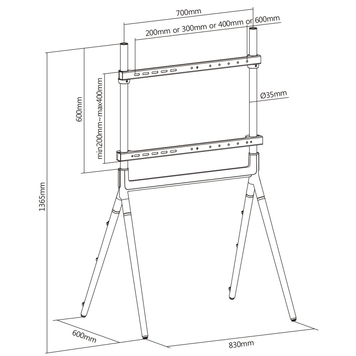 Praktische tv-standaard – ideaal voor huishoudens, kantoren, scholen en commercieel gebruik. De tv-standaard is geschikt voor televisies met VESA-standaard tot maximaal 600x400 mm en een maximaal gewicht van 40 kg. De standaard is geschikt voor QLED-, OLED-, LED-, LCD- en plasmatelevisies met een schermdiagonaal van 49-70 inch.