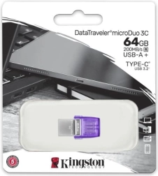 DataTraveler microDuo 3C is een praktische opslagoplossing voor dagelijks gebruik en op reis. Dankzij de USB‑C‑ en USB‑A‑connectoren verplaats je eenvoudig foto’s, video’s en documenten tussen smartphone, tablet en computer, zonder kabels of internet. De USB 3.2 Gen 1‑interface zorgt voor vlotte werkzaamheden met grote bestanden.