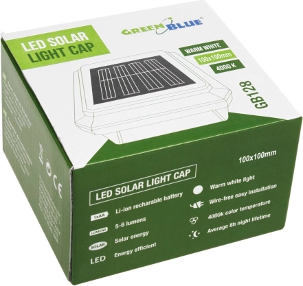 Een stijlvolle zonnedeksel voor palen met afmeting 100 × 100 mm zorgt voor draadloze verlichting van je tuin, hek of terras. Dankzij het ingebouwde zonnepaneel laadt hij overdag op en brandt hij ’s avonds automatisch met warm wit licht, waardoor de veiligheid en esthetiek van de buitenruimte toenemen zonder bekabeling.