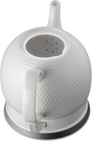 Witte keramiek met een reliëfpatroon oogt tijdloos en past in zowel moderne als traditionele keukens. U kunt de waterkoker direct op tafel serveren als theepot.