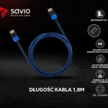 De blauw-zwarte gevlochten kabel biedt verhoogde slijtvastheid en een stijlvolle uitstraling.