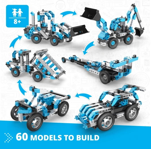 - 60 modellen in één – formulewagen, kiepwagen, graafmachine, quad, ruimteschip, kangoeroe en meer