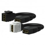 Deze Keystone-module biedt aan beide zijden HDMI type A (vrouw) connectoren, waarbij de achterzijde is uitgevoerd met een korte, flexibele kabel. Dit maakt installatie in krappe ruimtes makkelijker en vermindert het risico op beschadiging van de bekabeling. De module is geschikt voor professioneel gebruik in vergaderruimtes, AV-panelen, wandcontactdozen en rackoplossingen.