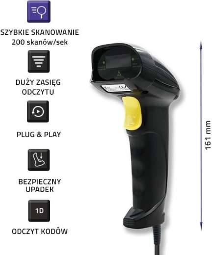 Qoltec Barcode Scanner biedt u eenvoudig en efficiënt toegang tot de informatie verborgen in barcodes. Het biedt snelle scanning met een snelheid tot 200 scans per seconde en is bestand tegen vallen van hoogtes tot 1,5 meter.