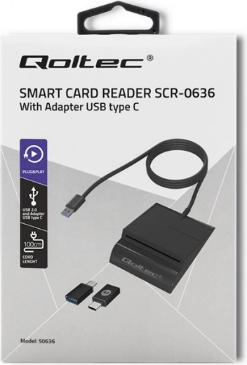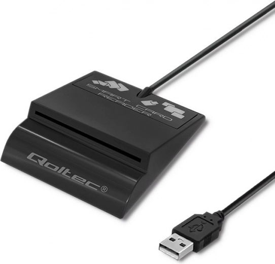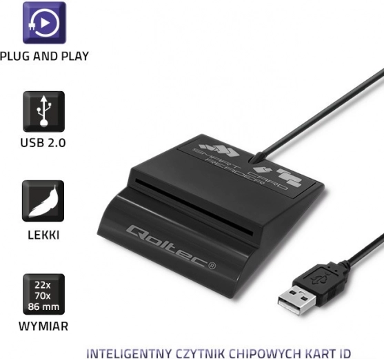 De USB-connector zorgt voor eenvoudige aansluiting op pc en laptop, terwijl de LED-diode de juiste plaatsing van de kaart aangeeft.