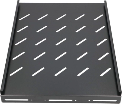 Deze metalen legplank is ontworpen voor installatie in 19" kasten met een diepte van 600 mm en neemt slechts 1U ruimte in. Het geperforeerde oppervlak ondersteunt efficiënte ventilatie, wat helpt de temperatuur van de geplaatste apparatuur te verlagen. Ideaal voor netwerkcomponenten, kleinere apparaten en accessoires die stabiele ondersteuning nodig hebben zonder volledige uittrekfunctie.