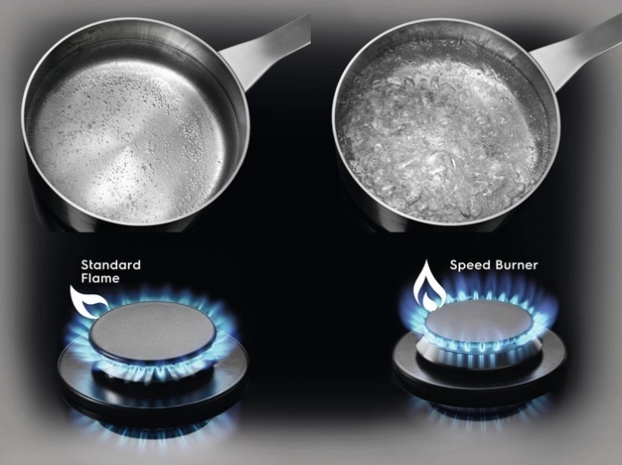 Snelheid en energiebesparing dankzij een speciale brander die zorgt voor snellere verwarming en tot 20% energiebespaart.
