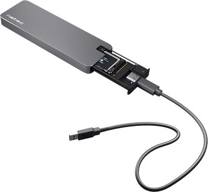 De externe behuizing NATEC Rhino is een elegante en robuuste oplossing die van jouw M.2 NVMe/PCIe‑SSD (M‑sleutel) een snelle draagbare schijf maakt. De volledig aluminium behuizing beschermt tijdens het reizen en de intuïtieve montage zorgt voor een stabiele fixatie van modules in de lengtes 2230, 2242, 2260 en 2280 tot een capaciteit van 2 TB.