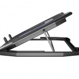 NATEC Oriole is een betrouwbare koelmat, ontworpen voor werk en gaming. Drie stille 120mm ventilatoren verlagen effectief de temperaturen en met de 3-traps snelheidsregeling schakel je gemakkelijk tussen maximale performance en stille modus. Het geperforeerde metalen rooster verbetert de luchtstroom en verhoogt de duurzaamheid van de constructie.