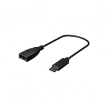 Voeding via de USB-poort van de laptop – geen externe adapter nodig. Er is een doorvoer-USB beschikbaar en in de doos vind je een kabel en een USB‑C → USB‑A adapter voor moderne apparaten.