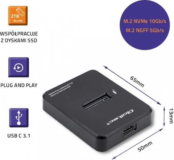 Het apparaat is ideaal voor werk met foto’s, video’s en grote archieven. Dankzij Plug & Play zijn geen drivers nodig – gewoon aansluiten en gebruiken. Antislip pads zorgen voor stabiele werking en een LED informeert over activiteit.