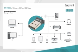Met de Bluetooth-adapter van DIGITUS kunt u genieten van de hogesnelheidsstandaard Bluetooth 5.0, die snelle en kwalitatieve gegevensoverdracht van foto's of muziek mogelijk maakt. Het apparaat is compatibel met mobiele apparaten, kan twee computers verbinden en verschillende accessoires zoals controllers, koptelefoons, luidsprekers, toetsenborden, muizen, printers, tablets of smartphones aansluiten. De adapter ondersteunt duale modus, LAN-functies en seriële poorten (SPP). Het Bluetooth-bereik is 10 tot 20 meter afhankelijk van de omstandigheden. Dankzij de BLE-functie is het energieverbruik aangepast aan de huidige behoeften.