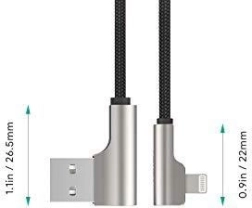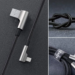 De betrouwbare AUKEY CB-AL01‑kabel van 2 m is ontworpen voor comfortabel gebruik in landschapsmodus – de Lightning- en USB‑A‑connectoren met 90° hoek steken niet uit en liggen beter in de hand. De nylon vlecht van premium materialen is zeer robuust en toch flexibel, zodat de kabel minder snel knikt en geen knopen vormt.