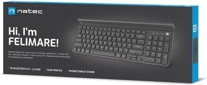 Ontdek Natec Felimare, een modern draadloos toetsenbord, dat u in staat stelt efficiënter en comfortabeler te werken. Het toetsenbord ondersteunt tot drie apparaten tegelijkertijd dankzij de combinatie van Bluetooth en 2.4 GHz verbinding. Probeer de stille en laagprofiel toetsen, die comfort bieden bij het typen zonder polsvermoeidheid.