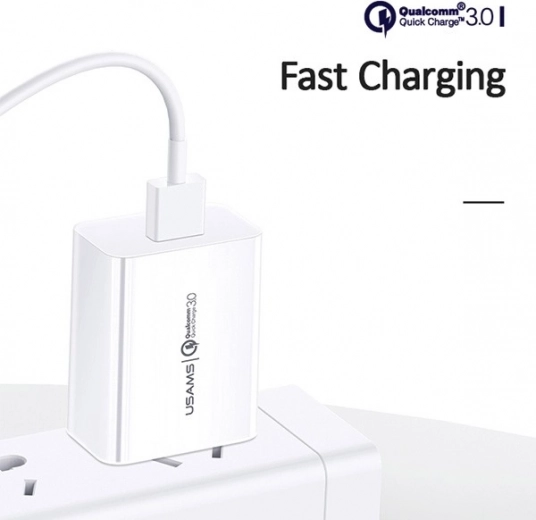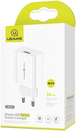 Betrouwbare en krachtige netvoedingsadapter USAMS T22 levert snel laden dankzij een intelligent systeem dat de spanning aanpast op basis van het apparaat en het laadniveau.