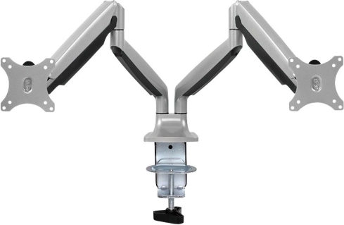 Creëer een ergonomische en overzichtelijke werkplek met deze dubbele monitorarm voor schermdiagonalen van 13–27" en een maximaal draagvermogen van 2×9 kg. Bespaar bureauruimte, verbeter je lichaamshouding en geniet van flexibele instellingen voor een comfortabele positie van je schermen, zowel voor werk als ontspanning.
