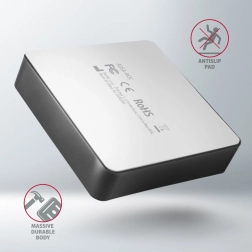 De snelle USB 3.2 Gen 2-interface en ondersteuning voor NVMe Express met UASP maken het mogelijk de volle snelheid van moderne NVMe M.2 SSD’s te benutten. Functies zoals TRIM en S.M.A.R.T ondersteunen optimale prestaties en schijfgezondheid. De elegante aluminium behuizing zorgt voor stabiele plaatsing op het bureau met antislip rubberen voetjes.