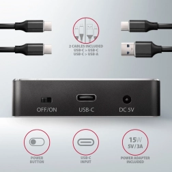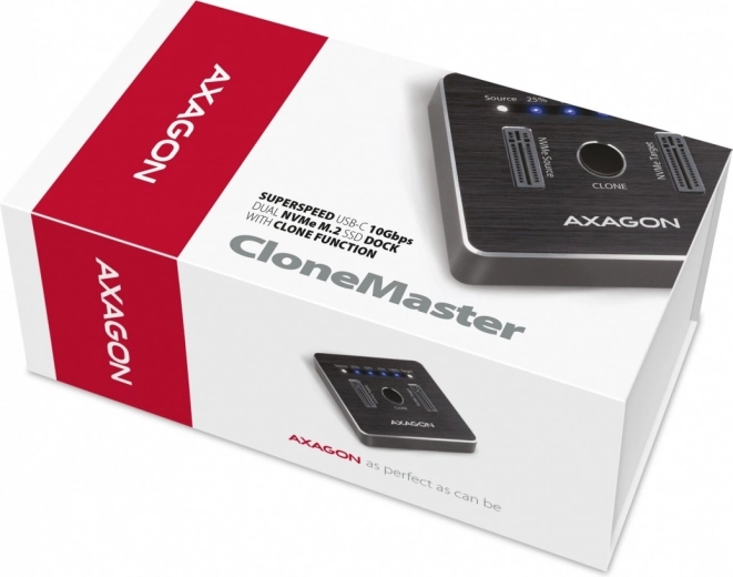 De AXAGON ADSA-M2C desktop-dockingstation zorgt voor een snelle en eenvoudige aansluiting van twee NVMe (PCI-Express) M.2 SSD’s op uw computer. De aansluiting verloopt via een omkeerbare USB‑C-connector, met de mogelijkheid om een standaardkabel USB‑C -> USB‑A of USB‑C -> USB‑C te gebruiken, die in de verpakking zit.