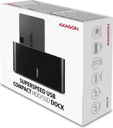Supersnelle en eenvoudige aansluiting van elke SATA-schijf op een computer met behulp van de AXAGON dockingstation. Eenvoudige installatie zonder gedoe.
