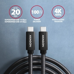 Deze AXAGON USB‑C ↔ USB‑C‑koppelingskabel is ontworpen voor een snelle en stabiele verbinding. Ondersteunt gegevensoverdracht tot 20 Gb/s (USB 3.2 Gen 2x2) en is achterwaarts compatibel met USB 3.2 Gen 2 / Gen 1 en USB 2.0. Maakt gelijktijdige dataoverdracht en opladen mogelijk (Data Sync & Fast Charging) en ondersteunt tevens video tot 4K@60 Hz en audio – vereist een USB‑C‑poort met DisplayPort Alt Mode of Thunderbolt 3/4.