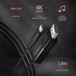 De actieve AXAGON USB‑C naar DisplayPort‑kabel verbindt eenvoudig een laptop, pc of telefoon met een monitor, tv of projector. Biedt resolutie tot 4K/60 Hz, DisplayPort 1.2, lengte 1,8 m en betrouwbare overdracht van beeld en geluid. Installatie is plug & play, de omzetting is eenzijdig (USB‑C → DP) en vereist een apparaat met DP Alt Mode of Thunderbolt 3.