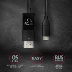 De praktische actieve kabel combineert een converter en verbindingskabel in één compacte oplossing. Hiermee kunt u inhoud van een USB‑C‑apparaat weergeven op een DisplayPort‑scherm in topkwaliteit Ultra HD 4K bij 60 Hz, inclusief meerkanaals audio. De DP‑connector heeft een vergrendeling met ontgrendelknop voor een stevige en veilige verbinding, de voeding komt rechtstreeks van USB‑C – zonder externe adapter.