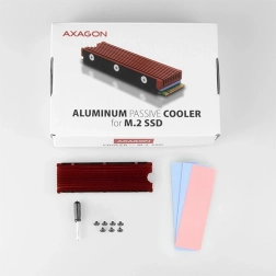 De passieve koelplaat van AXAGON voor SSD M.2 2280 verlaagt de temperaturen effectief tot wel 25 °C dankzij het aluminium koelribprofiel. Universele oplossing voor enkelzijdige en dubbelzijdige drives, compatibel met SATA en NVMe. In de verpakking zitten drie siliconen thermische pads voor perfect contact en eenvoudige montage.