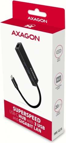De elegante en duurzame multi‑poort hub AXAGON HMC-GL3A is een uitstekende aanvulling voor ultrabooks en moderne laptops met USB‑C. Je krijgt drie snelle USB‑A‑poorten voor randapparatuur en externe schijven en tegelijk een stabiele Gigabit LAN voor werk en entertainment. Dankzij de standaard USB 3.2 Gen 1 (USB 3.0) haalt hij overdrachten tot 5 Gb/s en bedient moeiteloos meerdere externe schijven tegelijk.