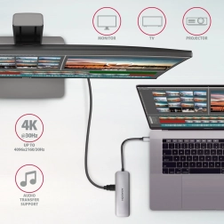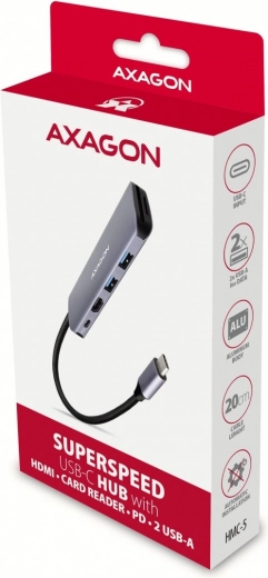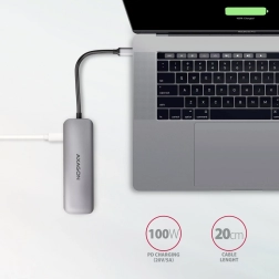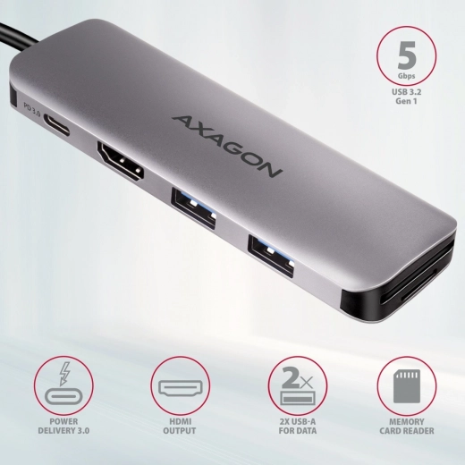 De universele 5-in-1 hub verandert één USB-C-poort in meerdere mogelijkheden. Sluit externe schijven, muis en toetsenbord aan, lees SD/microSD-kaarten en projecteer tegelijkertijd via HDMI tot 4K/30 Hz. Met USB-C Power Delivery voorzie je je laptop eenvoudig van stroom tot 100 W – zo bespaar je een poort en kabel.