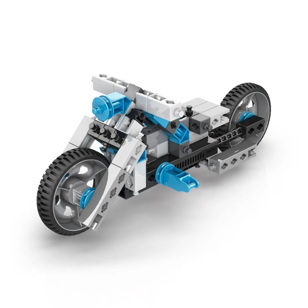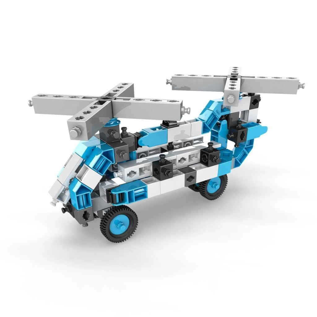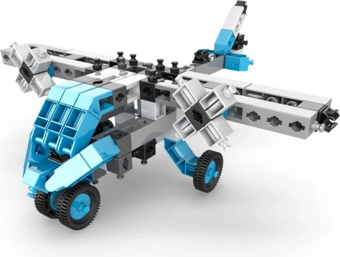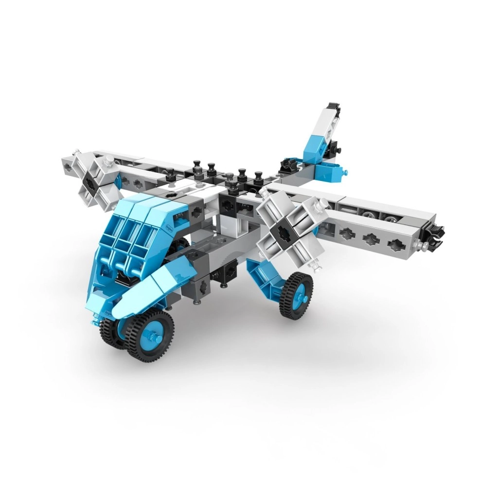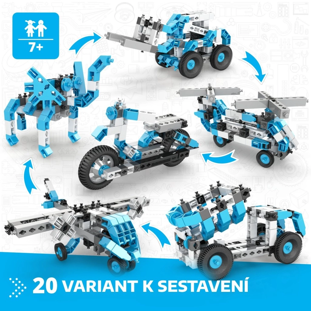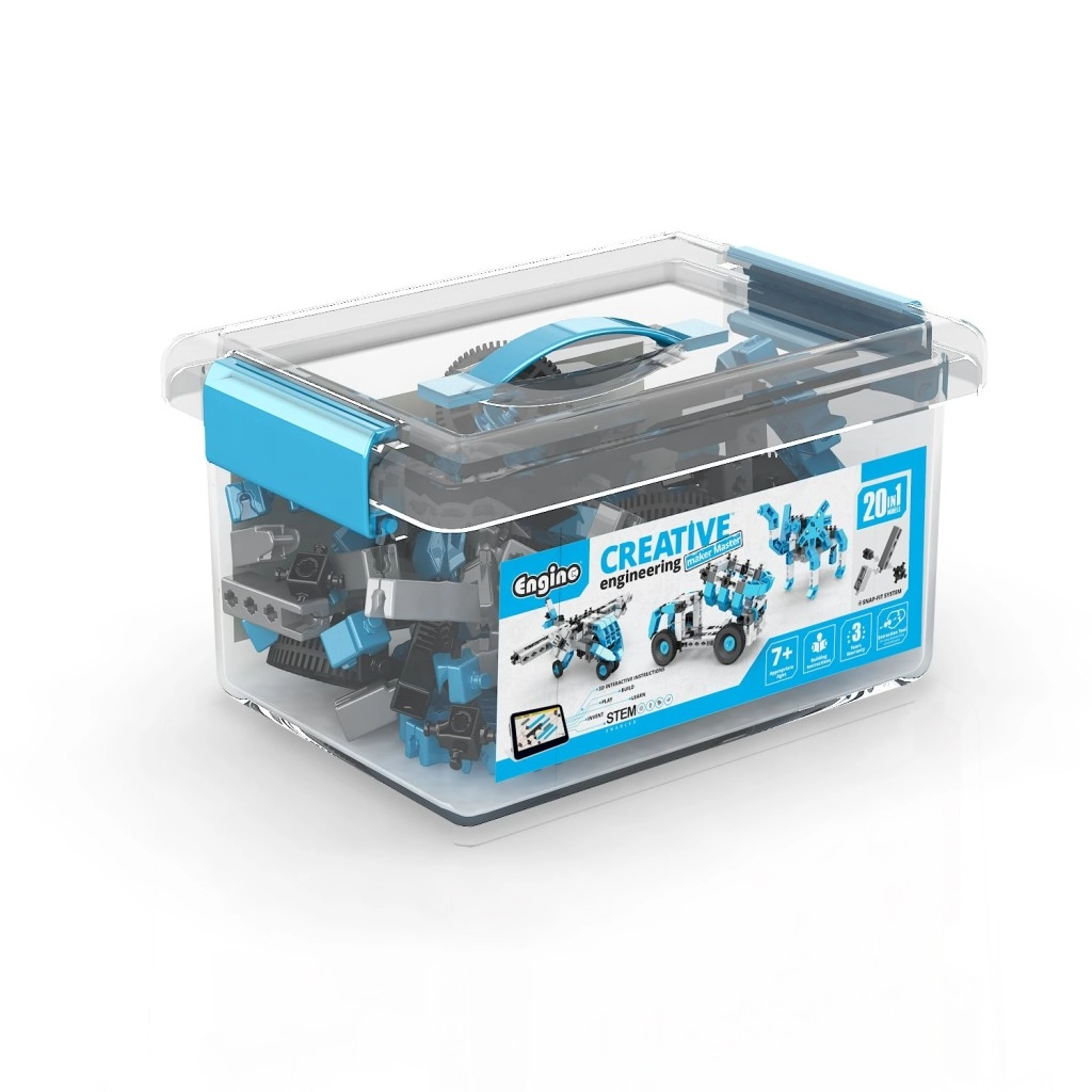 Ontdek de creatieve ENGINO-bouwset waarmee kinderen vanaf 7 jaar tot 20 verschillende modellen kunnen bouwen – van een motor, helikopter en vliegtuig tot werkvoertuigen, robots en dieren. De onderdelen in een blauw‑wit‑zwarte combinatie zijn opgeborgen in een praktische transparante box met handvat. De interactieve app Engino kidCAD biedt 3D-handleidingen die logisch denken, fijne motoriek en STEM‑vaardigheden ontwikkelen.