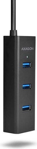 Compacte USB-hub van AXAGON met vier poorten, snelle overdrachten via USB 3.2 Gen 1 (5 Gb/s), ondersteuning voor snel opladen BC 1.2 tot 2 A op elke poort en optie voor externe voeding via micro-USB. Dankzij de vaste 30 cm kabel, brede compatibiliteit en overbelastingsbeveiliging is hij ideaal voor laptops en desktops.