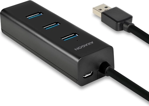 De compacte 4-poorts USB-hub AXAGON HUE‑S2BL breidt één poort uit naar vier en ondersteunt tegelijk snel opladen tot 2 A op elke poort dankzij USB Battery Charging 1.2. Dankzij de lange kabel van 1,2 m is hij ideaal voor desktops, biedt mogelijkheid voor externe voeding via micro-USB, USB 3.2 Gen 1 overdrachtsnelheden tot 5 Gb/s en betrouwbare werking met overstroombeveiliging.