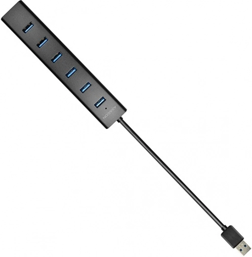 Compacte aluminium constructie met voldoende afstand tussen de poorten maakt het mogelijk ook grotere apparaten aan te sluiten. De stevige kabel van 40 cm is ideaal voor laptops.