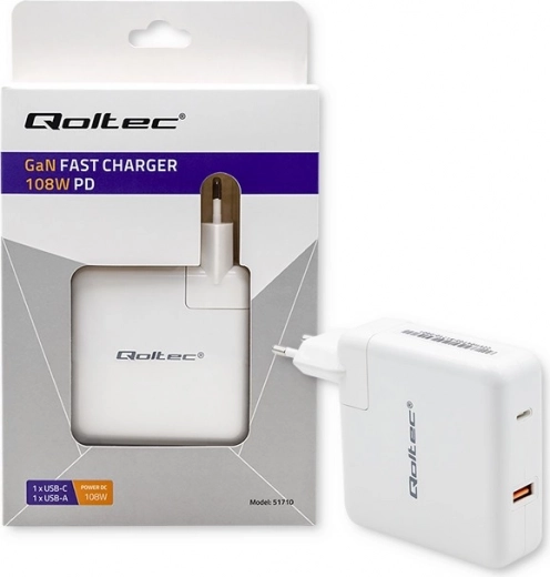 De Qoltec GaN FAST 108W lader vormt een revolutie in oplaadtechnologie dankzij het innovatieve gebruik van het halfgeleidermateriaal GaN. Deze technologie zorgt ervoor dat de lader niet alleen krachtig en snel is, maar ook lichter dan traditionele modellen.