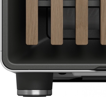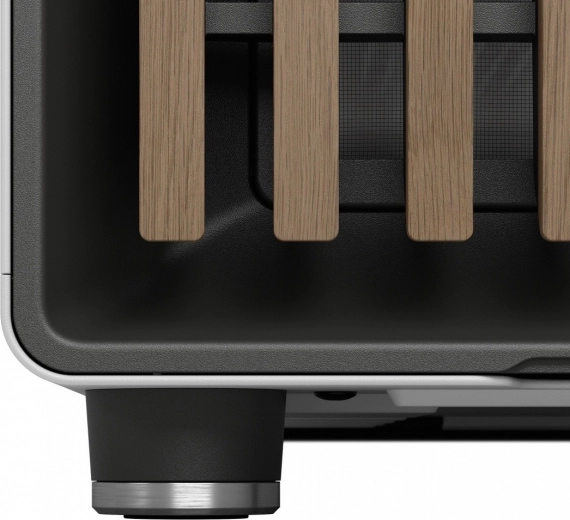 - Open ontwerp met lamellen van echt hout (noten/eik), fijne mesh-ventilatie
