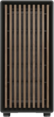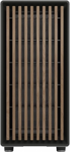 De open voorkant met verticale houten lamellen en fijn gaas combineert esthetiek met hoge koelprestaties – ideaal voor zowel stille als krachtige builds.