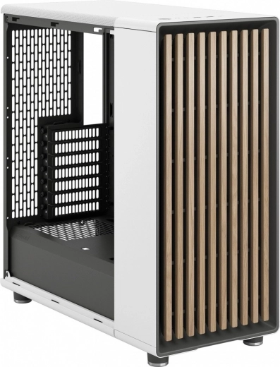 De stijlvolle computerbehuizing North Chalk White TG Clear Tint combineert modern design met natuurlijke materialen. Biedt uitstekende airflow dankzij de open voorkant met houten lamellen en fijne mesh-ventilatie, gehard glas voor een helder zicht op de componenten en een intuïtieve interne indeling voor eenvoudige bouw. In de doos zitten 2× 140mm PWM-ventilatoren en er is snelle toegang van bovenaf via een geïntegreerde vergrendeling.