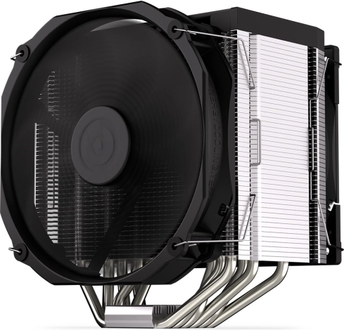 Dichte lamellen en zes heatpipes voeren warmte efficiënt af van de CPU. De asymmetrie zorgt voor betere compatibiliteit met hoge RAM-modules en optimalisatie voor een eenrichtingsluchtstroom.